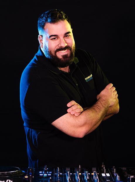 Hace una increíble sinergia con nuestros Djs, de hecho, él es uno más en Cabina, ¡le gusta demasiado la fiesta para estar alejado!