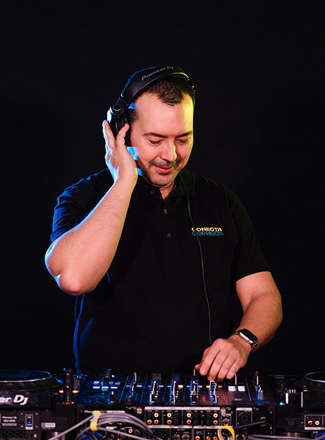 somos los que llevan tu evento al siguiente nivel, un equipo que vive por la música, sabemos cómo hacer que tu fiesta se convierta en un espectáculo inolvidable. Conoce a los locos que están detrás del ritmo, las luces y la magia. ¡Nosotros ponemos la vibra, tú solo disfruta!